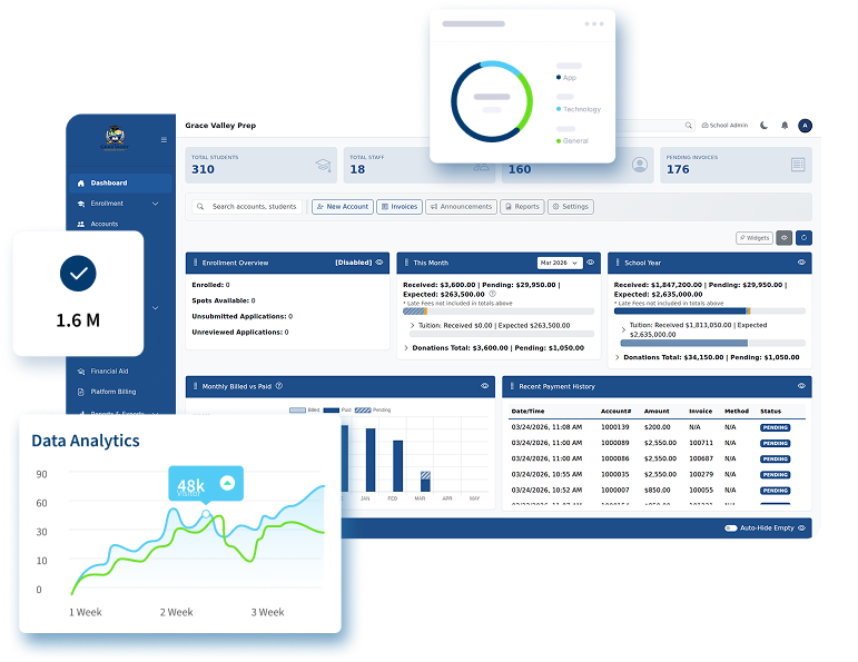 What kind of schools is this built for?Acadesync is built for K-12 schools: private, independent, faith-based, and charter. Whether you have 50 students or 5,000, the platform scales with you. If you're using FACTS, TADS, Gradelink, or a patchwork of spreadsheets and standalone systems, you're exactly who we built this for.